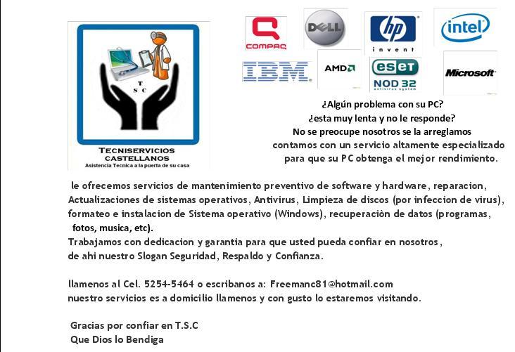 Tecniservicios Castellanos de todo en mantenimiento de computadoras